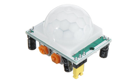 The IR presence detector typically has three pins: VCC, GND, and DOUT (digital output).